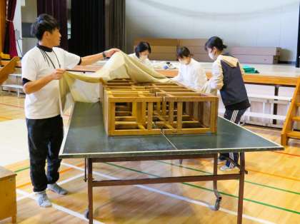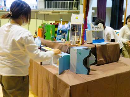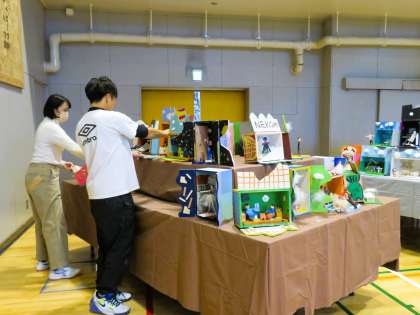 子どもたちの作品を、少しでもよくお見せすることができるようにと、作品の配置や装飾の一つ一つに工夫をしています。
