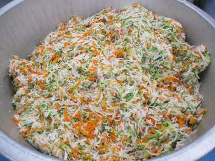 今日は「切り干し大根のサラダです」。「切り干し大根」とは大根を細長く切って乾燥させた乾物です。西日本では「千切り大根」と呼ばれています。食物繊維を多くふくむので便秘解消に良いですね。