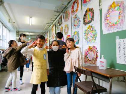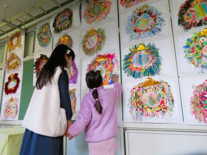 5時間目までは、子どもたちの交流鑑賞の時間です。上級生が「すごーい!」「素敵な作品だね!」などと、優しく声をかけています。