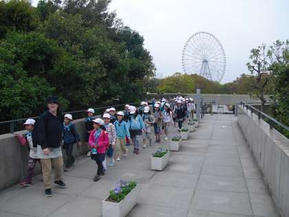 今日は4年生の遠足でした。電車を乗り継いで、少し遠くの葛西臨界水族園へ行きました。心配していた天候ですが、4年生の日頃の行いが良いのでしょう、予定通り臨界公園でお弁当を食べることができました。