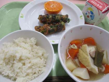 今日は「おでん」です。こんぶ・鶏もも肉・こんにゃく・にんじん・だいこん・生揚げをしようしています。寒くなったり少し暖かいと感じたりしますね、体調管理ができるといいですね。