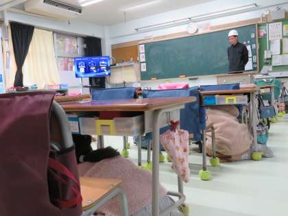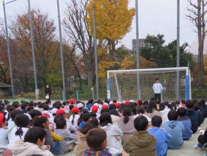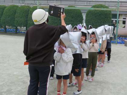 世田谷区災害対策課の方が訓練の様子を見ていて「校長先生は厳しいですね。お子さんたちは、全くお喋りがなく静かで真剣に取り組んでいますね」と褒めていただきました。