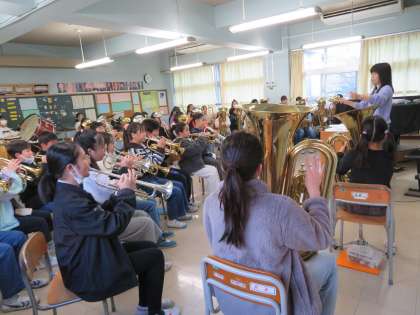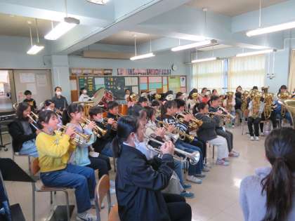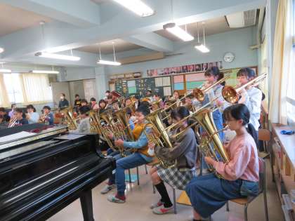 金管バンドは、12月10日のバンドフェアに向けてのリハーサルです。入退場を含め、本番をイメージしながら集中した練習を行っています。