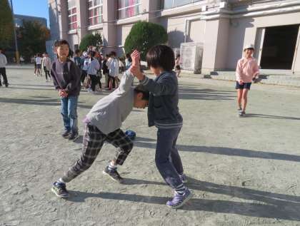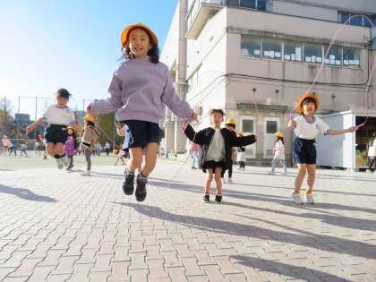縄跳び、リレー、相撲をして遊んでいます!