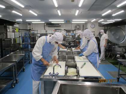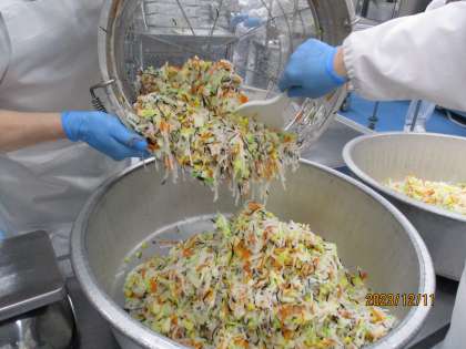 今日は「大根とひじきの和え物」が副菜の付け合わせ野菜です。 大根・人参・白菜・コーンひじきを使用しています。『ひじき』には鉄分という成分がたくさんふくまれており身体の血液を作ってくれます。貧血防止に優良な食材です。