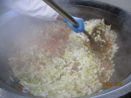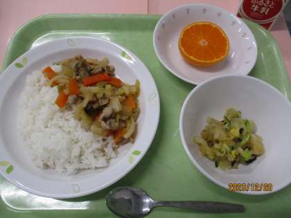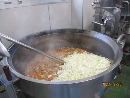 今日は「豚すき丼」です。豚肉をたくさん使用して作っています。白菜・人参・玉ねぎ・しめじ・ねぎ、など野菜の種類も豊富です。おいしくいただけるといいですね。