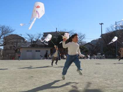 青い空に凧が舞い上がっていく様子は、いつまでも覚えていることと思います!