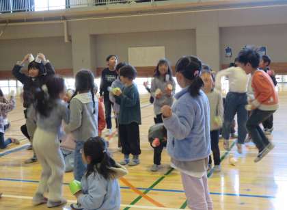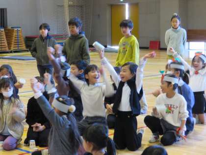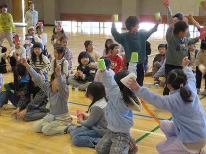 写真は、「リズム遊び」の部、結果発表の様子です。