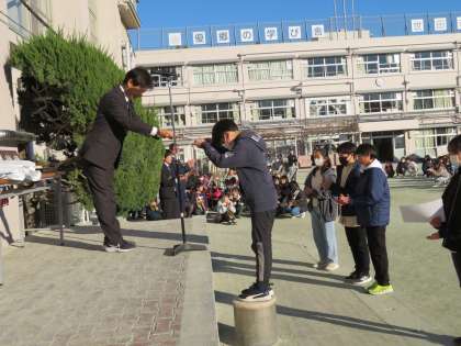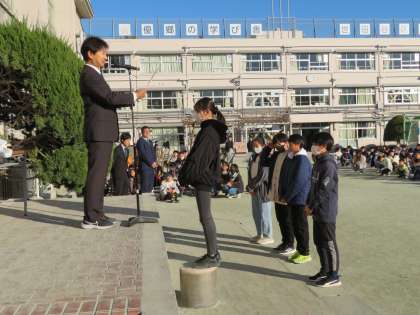 連合運動会1位〜8位までの入賞者の表彰を行いました。