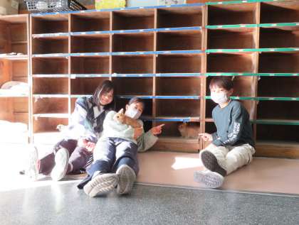 冬休み中も飼育委員の子どもたちと先生が、ウサギのお世話を継続して行っています。ウサギに餌と水を与え、掃除をしてくれています。さらに暖かい昇降口でうさんぽ(お散歩)も…。ウサギのモカとラテは、寒い冬を乗り越えられるよう暖かい校長室で生活しています。飼育委員の皆さん、いつもありがとう!