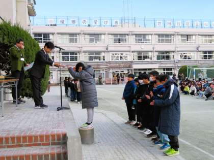 1/15 全校朝会〜何事にもチャレンジを!〜2