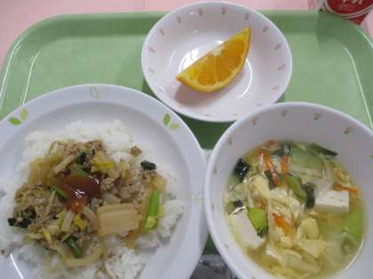 今日は「ビビンバ丼」です。韓国の代表的なご飯料理です。ビビンバは、ご飯の上に盛り付けられ、味噌だれをかけてスプーンで混ぜて食べる料理です。美味しくいただけるといいですね。