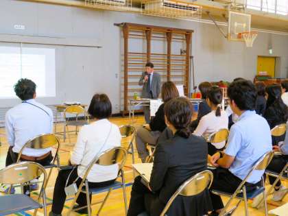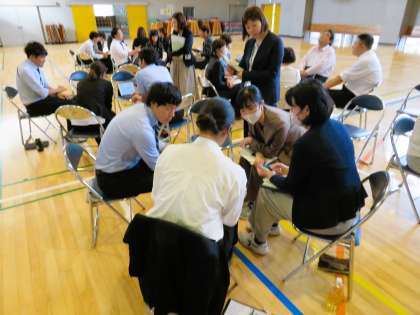 子どもたちの下校後は、実践した授業をもとに協議し、講師の白旗和也先生からご指導をいただきました。講師の先生からは、「先生と子どもたちの雰囲気がとってもいい!」「明るく元気できびきびと行動ができていた」「子どもたちの成長がよく見えた授業であった」と褒めていただきました。
