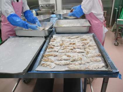 今日は「鮭のから揚げ」です。鮭にはビタミン類・アスタキチン・EPA・DHAなどの栄養素が含まれています。貧血予防(鉄分)美肌効果(たんぱく質)カルシウムの吸収を促すなど身体に良い効果があります。