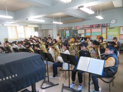 金管バンドは毎朝休みなしで活動しています。いつも気持ちのいいあいさつがあり、朝から清々しい気持ちになります。新たな目標である、2月17日実施予定の「世田谷区立小学校管楽器発表会」(玉川区民会館)に向けて取り組んでいます。