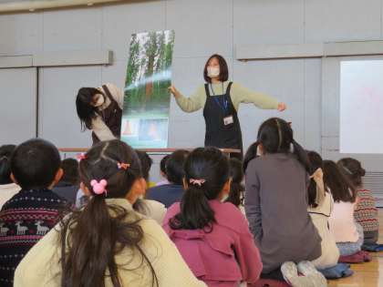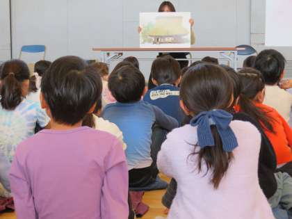 2年生は、世田谷区立中央図書館の方々に来ていただき『お話会』を行いました。「大型絵本」「手遊び」「素話」など、工夫を凝らしたお話をたくさん聞かせていただきました。子どもたちは、おはなしの世界に惹きこまれていました。