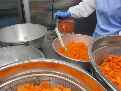 今日は「ガーリックポテト」です。じゃがいもをくし切りにして、油で揚げてガーリックパウダーと塩を合わせた調味料をまぶして作っています。美味しくいただきましょう。1月24日から1月30日までの1週間は全国学校給食週間です。