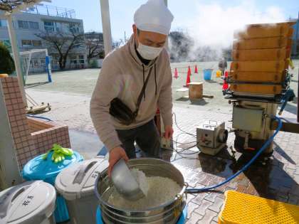 今日は同窓会主催の「こどももちつき体験」が開催されます。朝8時から同窓会の方、PTAの方々、教職員が集まり「もちつき」体験の準備をしています。午前10時から校庭で行いますので、ご参加をお待ちしています。