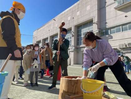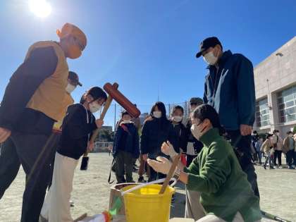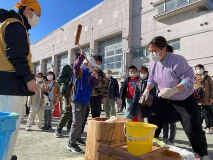 子どもたちの「おいしくな〜れ!」と、願いを込めてのもちつきです!