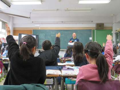 授業の様子をお届けします。今日は寒い1日で、昼頃から次第に雪が降りはじめました。子どもたちは、久しぶりの雪に興奮気味です!