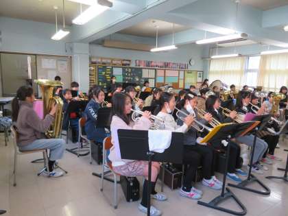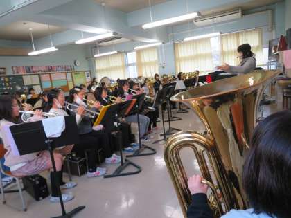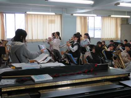 金管バンドは、音楽室に入ると気持ちのいいあいさつがあり、朝から清々しい気持ちになります。現在は、2月16日「音楽朝会」と2月17日「世田谷区立小学校管楽器発表会」(玉川区民会館)に向けて一生懸命に取り組んでいます。