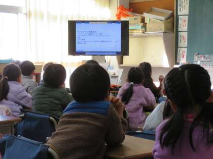 今日の児童集会は、1年間のクラブ活動を発表する集会です。全校児童が体育館に集まって行うことはできないため、アニメクラブ、生き物クラブ、ダンスクラブ、理科工作クラブの動画発表と、展示での発表です。