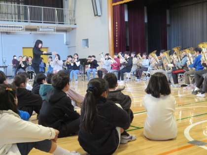 1曲目は「聖者の行進」です。迫力のある素敵な演奏に、子どもたちは惹きつけられていました。