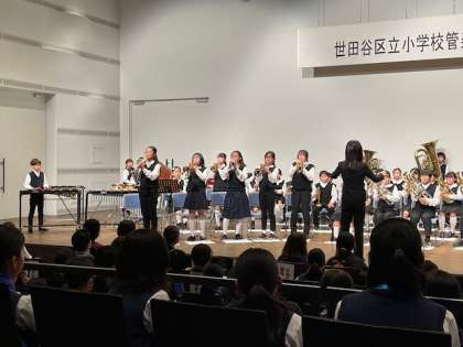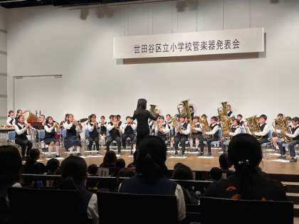 今日は「世田谷区立小学校管楽器発表会」に松丘小学校金管バンドが出演しました。玉川区民会館で「聖者の行進」と「残酷な天使のテーゼ」の2曲を演奏しました。