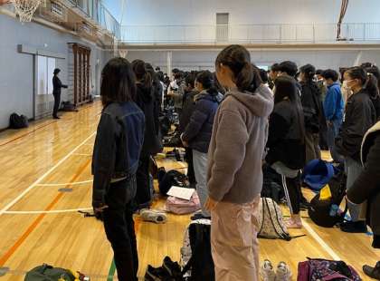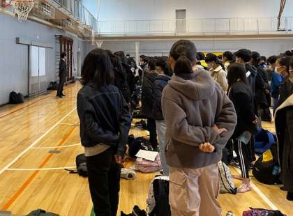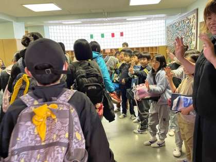 今日は6年生の社会科見学で、国会(衆議院)、科学技術館の見学です。まずは、出発式を行いました。