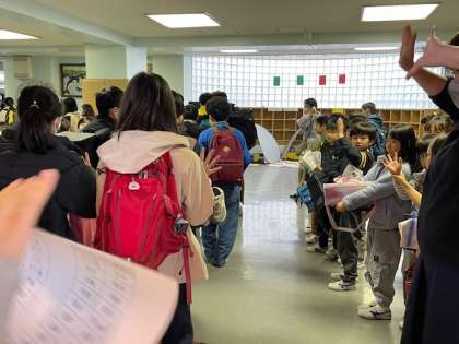 6年生が出発するときに、2年生が「いってらっしゃーい!」と、温かく手を振って見送ってくれました。
