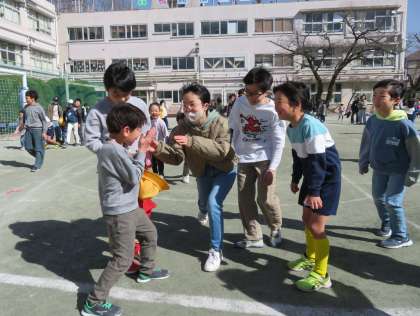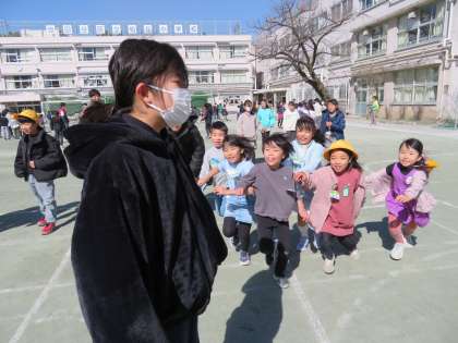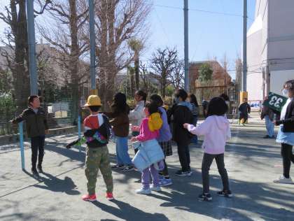 「だるまさんが転んだ」で遊んでいる班の様子です。とっても楽しそうです!