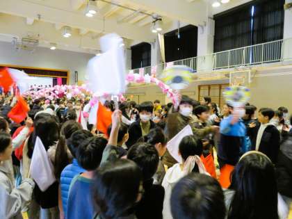 花道を作って、盛大な拍手で6年生を見送りました。1年生から5年生の言葉に一つも嘘はありません。6年生の一生懸命な姿を見て、1年生から5年生が成長しています。6年生ありがとう!
