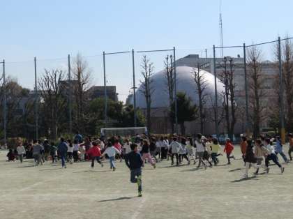 3月の避難訓練は、子どもたちには「予告なし」で行いました。昼休みから清掃場所に行く時に大きな地震が発生という設定で行いました。放送の音とともに、ほとんどの子どもが瞬時に反応し、指示をよく聞いていました。