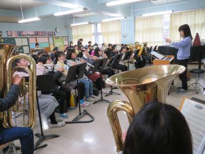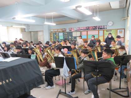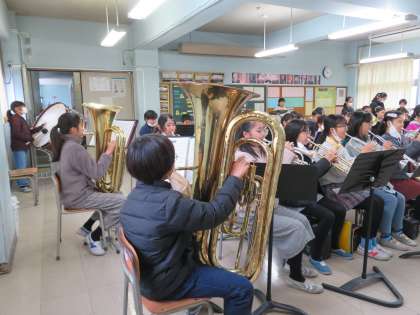 金管バンドは、明日の「お別れミニコンサート」に向けてリハーサルです。入退場を含め、本番をイメージしながら集中した練習を行っています。