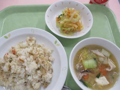 今日は「じゃこ入りチャーハン」です。じゃこにはカルシウム・ビタミンDが多く含まれています。健康に優しい食品ですね。