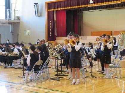 保護者の方々、応援に駆け付けた先生方を前に、金管バンドを通して育ってきた心の成長、伝統の重さなどを立派に発表しました。