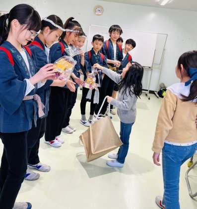お楽しみ会では、OBへのお礼や卒業する6年生へのお祝い、1年間頑張った子どもたちへご褒美が渡され、「私は誰でしょうクイズ」で大盛り上がり。みんなの笑顔が溢れる素敵なお楽しみ会でした。
