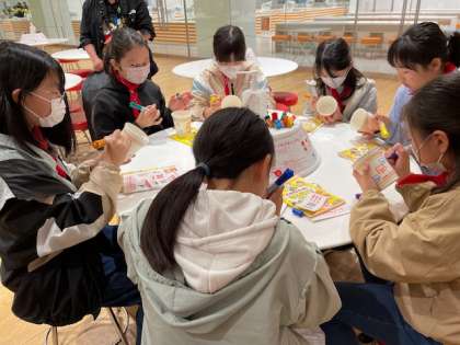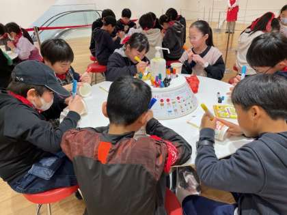 カップヌードルミュージアムに到着しました。まずは、世界でひとつだけのオリジナル「カップヌードル」を作ることができる工房で、カップをデザインしました。