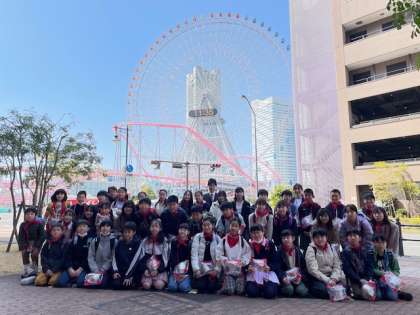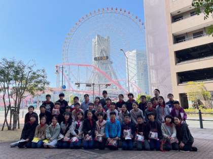 見学後は、カップヌードルミュージアムの外で記念写真を撮りました。