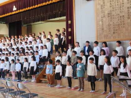 最後に「校歌」を歌いました。一人一人が一生懸命で、いい声が出ていました!