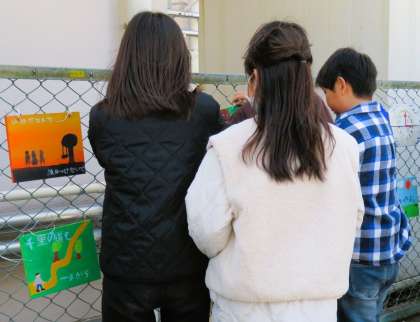 6年生は、卒業制作の「メッセージボード」を取り付けました。このメッセージボードを通行人の方が写真を撮っている場面を目にします。また、「このような作品はいいですね!」と褒めてくださる方もいます。