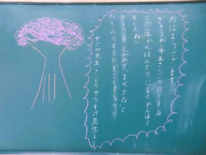 担任の先生からの温かいメッセージが、子どもたちを迎えていました。ここに紹介するのはその一部です。