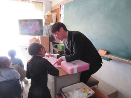 担任の先生から修了証が手渡されました。修了証とは、その学年の学習すべきことを修了したことを証明するものです。担任の先生が教室や廊下で、一人一人に言葉を添えながら渡しています。