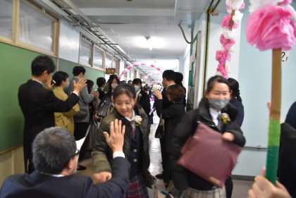 温かい拍手で、卒業生の門出を祝いました。
