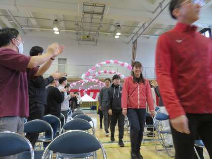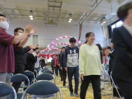 昨日の夕方に、新たなメンバーの先生方を囲んで「お迎えの会」を行いました。お花のアーチと盛大な拍手でお迎えをしました。