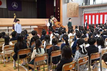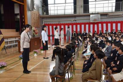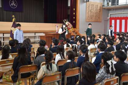 担任の先生の発表と、6年生代表児童による「歓迎の言葉」です。さすが松丘小学校の6年生です。1年生が安心できる、心のこもった歓迎の言葉でした。