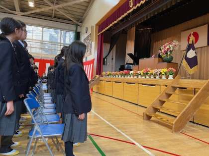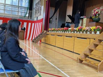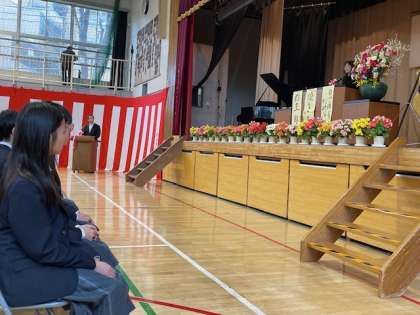今日は『優郷の学び舎』弦巻中学校の入学式が行われました。新入生173名、一人一人の呼名に気持ちのよい返事がかえってきました。後ろに並んでいる2年生の態度もとても立派でした。