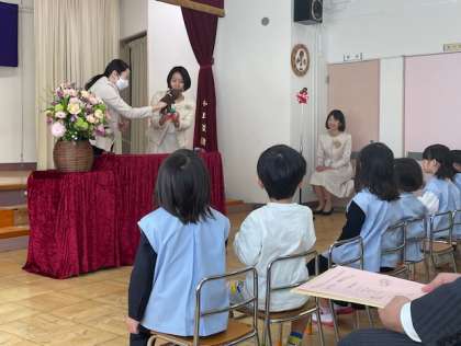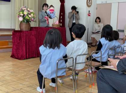今日は「優郷の学び舎」松丘幼稚園幼稚園の入園式です。とってもかわいらしい子どもたちです。園長先生の話、担任紹介、教職員紹介、そして担任の先生と一緒に、手遊びなどをして楽しそうにしていました。ご入園おめでとうございます。