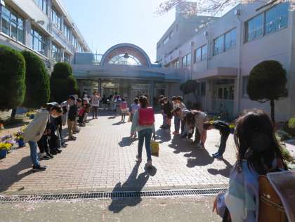 今年度初めての「優郷の学び舎」あいさつ運動1日目です。トップバッターで5年生が正門と南門でのあいさつ運動です。登校して来る子どもたちへ、気持ちのよいあいさつを投げ掛けてくれています。あいさつのシャワーを浴びた保護者の方が、「とっても気持ちのよいあいさつで、元気をたくさんいただきました!」と褒めてくださいました!