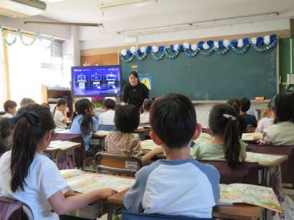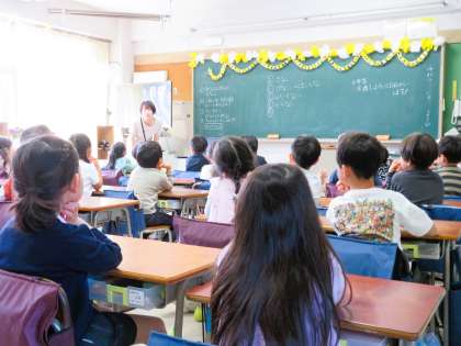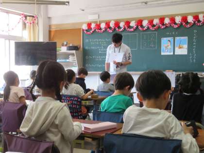 それぞれの教室に毎日入っています。落ち着いて、姿勢正しく先生の話を聞いている子どもたちに感激です。